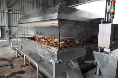 The next stage in the journey of cork is boiling. The seasoned cork planks are boiled to soften them, to clean them, and also to expand them slightly. In the past this was a problematic stage: the water was rarely changed so it was like all the members of a family sharing the same bath. Now the water is filtered, and also replenished (around 40% is fresh during the day), so it’s more like a shower than a shared bath.