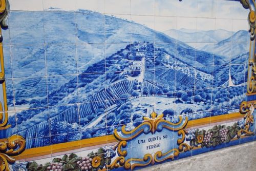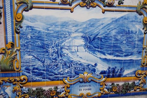 Ever since I first arrived at Pinhão station in Portugal’s Douro Valley, I’ve been amazed by its beautiful blue tiles (azulejos). Overall, there are 3024 of these hand-painted tiles, arranged in 24 panels depicting wine production in the Douro as it would have been a century ago.