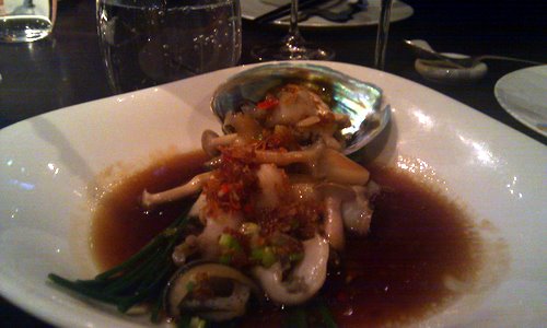 Third, the food. We ordered a dozen dishes between seven, and shared them. They were all wonderful. Even though we had full bellies by the end, we would have liked to continue. I particularly enjoyed an interestingly spiced pork belly, and a sensitively flavoured dish of abalone.