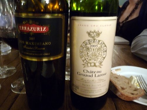 The wines were all superb, and the comparison was really interesting. I’ll write them up in full in due course. Gruaud Larose and the Montesodi were both drinking beautifully, and were probably the wines of the night. The Errazuriz wines were all very good, with the Sangiovese being a real surprise: this is the first decent Chilean Sangiovese I’ve had.