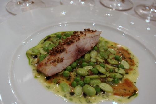 Then, a masterful course: roasted silver mullet with spring vegetables, shallots and paprika. This went very well with the Lion’s Tooth Chardonnay from Pyramid Valley, but also a good pairing for Craig Hawkin’s El Bandito Chenin Blanc.
