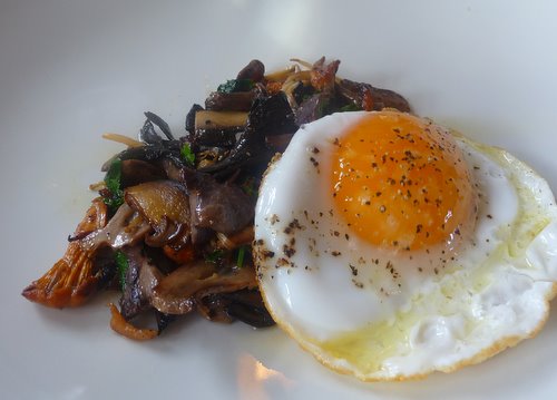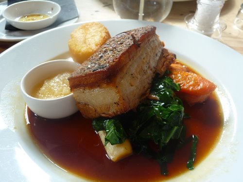 I started with mushrooms and duck egg, beautifully executed (pictured, top). This was followed by slow-cooked middlewhite pork belly, that was astonishingly good – one of the best pork bellies I can recall.