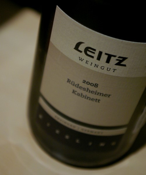 I don’t think Riesling will ever be fashionable, but I do enjoy it. Tonight I’m sipping a nice one from Leitz in Germany’s Rheingau, who I visited last May. It’s not one of their top wines, but it is very drinkable – the Rudesheimer Kabinett 2008, showing honeyed, limey fruit and crisp grapefruit notes on the finish. At £13.50 from Booths it’s probably (if I’m being honest) a little over-priced, but it is bringing me considerable pleasure after a difficult day. And it’s only 8.5% alcohol (with 36 g/l residual sugar).