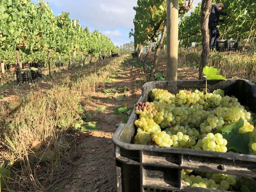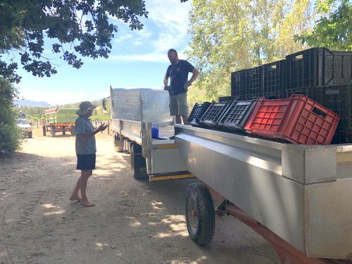 The next trip was to Elgin, a much shorter journey. I went with intern Paolo and a trailer to collect four tons of Chardonnay from Charles Fox. This is the first time Peter-Allan has taken Elgin Chardonnay, which is in high demand these days. The grapes looked and tasted beautiful, with nice acid and flavour.