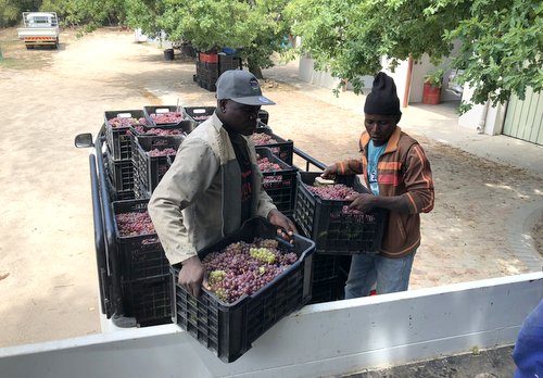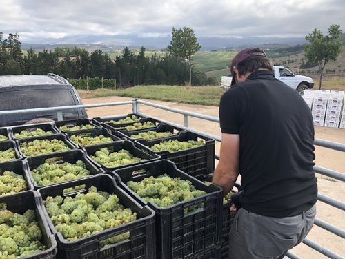 - Pressing Chenin Blanc and sorting Pinot Noir