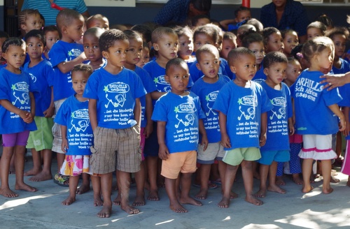 I was seeing how money raised from Fairtrade wine has been used to provide schooling facilities for the children of agricultural workers. Typically, both mum and dad will be working on the farms, and without the schools, young children would be with them. We saw the pre-school and primary school provision for these children. They even sang a song for us.