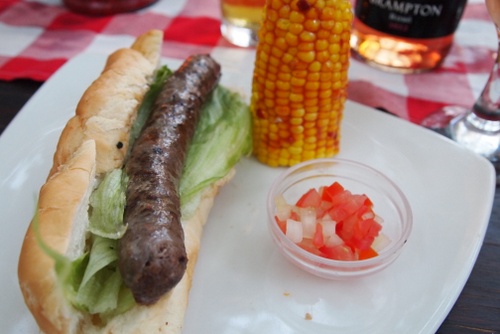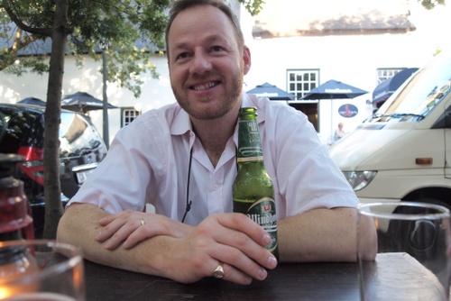 Then, it was back to Stellenbosch. I met up with Greg Sherwood and we went out to dine at the Jolly Parrot. Not Michelin star stuff, but you can’t say no to a boerewors hot dog with corn for 25 Rand. We started off with a Windhoek beer (it was high 20s, a warm evening). The wine list is short (4), but we found a couple of Brampton wines on it.