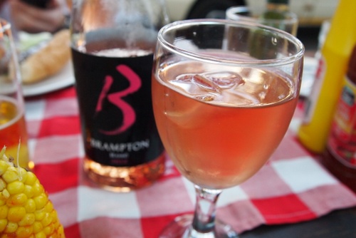 The Rose was delicious with an ice cube in the glass, and this went down easily. It was followed up with a bottle of the Brampton OVR, a perfectly respectable berryish red that had to be chilled down dramatically in an ice bucket (it was hot to the touch).