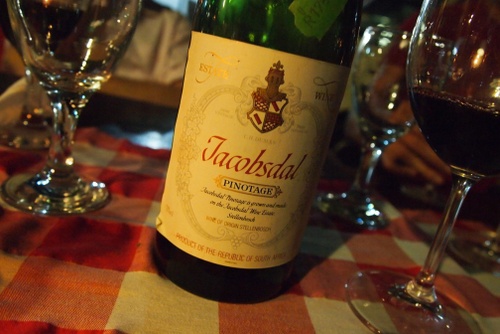 Myself and Ryan brought the Jacobsdal Pinotage, it was 1996 made from bushvines in the Polkadraai region (west of Stellenbosch). It was light and elegant on the structure so much more like a Pinot Noir but with some cured/dried meat depth, pure red berry fruits like cranberry and redcurrants. A really interesting bottle – we bought it at the Mooiberger Farm Stall on the R44 by Audacia. Reasonable R175, worth a shot