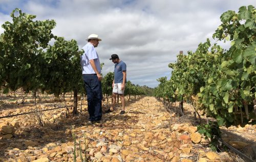 We toured around the vineyards and had a look at the different blocks. There are two main soil types on the farm: free-draining, rocky sandstone with some quartz, and then clay and shale. The latter has really good water-holding capacity, and if the new normal is these drought conditions, it will be the prime terroir. Overall, these are really good vineyard soils.