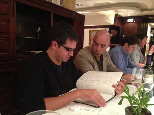 Richard Hemming, Xavier Rousset and I hatched a plan to go and dine separately from the official congress dinner – after all, we were all here for the first time and we only had one night to play with. So we asked Ferran Centelles for advice: there is only one place to go, was his response. Rekondo. So he booked for us, and joined us along with David Molina and Sarah Jane Evans. And a few more. In the end we made a party of 12, so plenty of scope for some interesting wines. We initially set a nominal limit of 50 Euros per bottle to keep things from going crazy, which left plenty of scope for interesting old bottles, so good is the pricing here. But this limit was broken a few times!