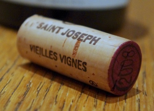 This is a beautifully packaged wine, and I was particularly taken by the high quality 49 mm untreated cork. This will be quite expensive. The wine is pretty good, too, from an old vineyard in Saint-Pierre de Boeuf, Mauves.