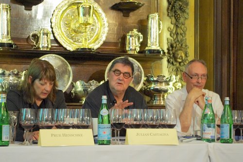 This led to a discussion about tasting grapes in the vineyard. There has been a big change, says John Duval, whose wines fit comfortably into the elegant new-Barossa style. 40 years ago winemakers didn’t go into the vineyard, he recalled. Now they walk the rows tasting the fruit. In his view, it is one of the factors that has contributed to rising alcohol levels. Winemakers say they are looking for ripe fruit flavours; for physiological maturity. Tim Kirk suggested that by time you get the flavours you want in the grapes, it’s probably too late. You have to then pick the vineyard, and in the delay between the tasting and the picking the flavours can be lost and the sugar levels can rise. Prue, however, was very keen on tasting and waiting for ripe tannins in the grapes, and Julian Castagna says that he doesn’t do any analysis of his grapes until the taste is right.