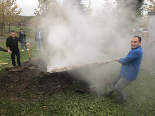 Then it was back to New Zealand, just in time to catch Takaki Okada’s post-vintage Hangi. The food is cooked in a pit, and this is the unearthing.