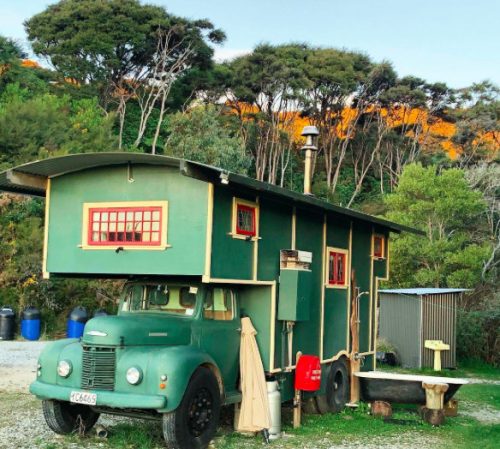 We stayed in this brilliant van at Golden Bay Hideaway, which had an outdoor bath.