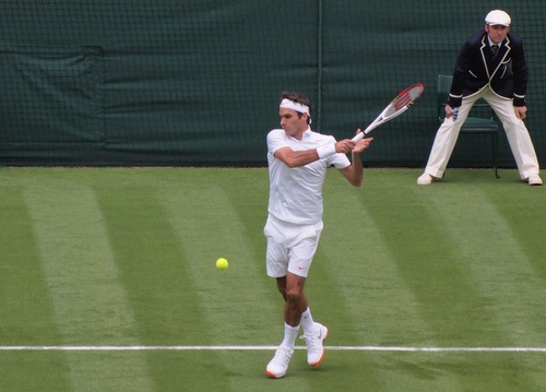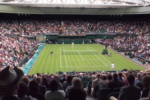 Had a cracking day at Wimbledon today, watching tennis with some good wine trade buddies. It was courtesy of Champagne house Lanson. We had centre court tickets, and watched three games involving three great players: Roger Federer, Maria Sharapova and Andy Murray.