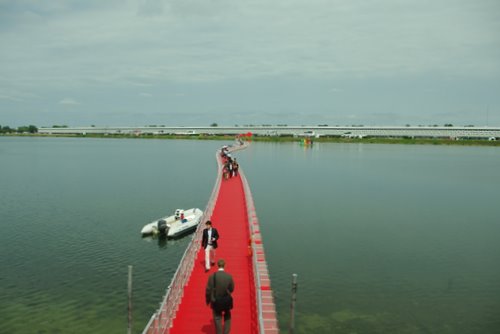 The floating bridge is possibly the coolest thing about Vinexpo. That, and the fact that all walkways are covered with red felt – the red carpet treatment. This bridge sways quite spectacularly if enough people are on it at once and they’re walking in step. I felt seasick by the end.