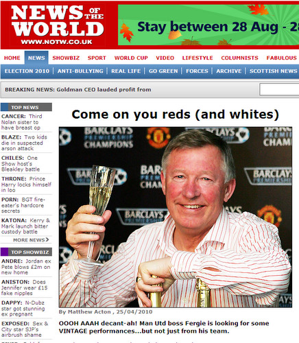 The News of the World reports today that when Manchester United manager retires (he’s now 69) he plans to get into the wine trade in some capacity – either as an importer or even a vineyard owner.