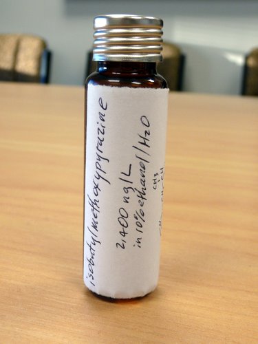 Pictured above is a vial of isobutylmethoxypyrazine, the chemical naturally produced by grapes that has been such a signature of Marlborough Sauvignon.