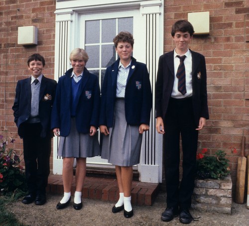 I helped Hester load some pictures onto her Mac, and in the process found some old family pictures. The top picture is probably from Arthur’s first day at school (he was born 1971, which makes it c. 1976, when Anne and I were 8 and Hester 6). Above is his first day at RGS High Wycombe (the girls were at Beaconsfield High School). I was in fifth form, and I’m still wearing the blazer I started with aged 12 – you’ll notice that Arthur’s blazer is a little large for him. Below we’ve fast-forwarded to 1987. Don’t you love those 80s haircuts? I’ve just finished at Royal Holloway in this picture, and we’re on a family camping holiday.