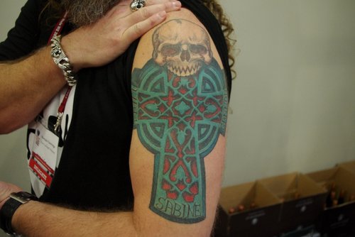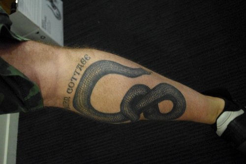 Marquis Sauvage of Burn Cottage, and below the Burn Cottage tattoo on his leg, which took 4 h and was v painful.