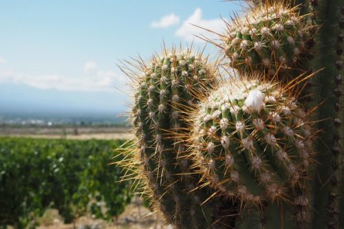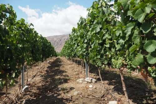 Cafayate itself is a small town of around 10 000 people, located at 1700 m altitude. Annual rainfall here is very low, at around 200 mm, so any vineyards have to be irrigated. The valley Is, at its widest, 25 km from mountain range to mountain range, and the altitude rises to over 3000 m: this is where some of the highest vineyards on the planet can be found (until recently, the highest in the world was here – Ulquia at 3329 m – although there’s now a higher one in China). There are 23 vineyards in the valley at over 2300 m.