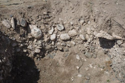 I had a look at three vineyards from El Esteco, together with agronomist Ramiro Rocha. The first was the new El Socorro vineyard, which was planted a few years ago after a lot of work clearing large rocks from the soil. The soil is actually the special feature in this part of the valley: it’s really rocky, and many of the rocks have been crusted in calcium carbonate. This is a common feature of arid soils like these – it’s known as pedogenic lime, and it can have an influence on the vines. Socorro is planted to red varieties and the wine from here, which will soon emerge, promises to be very special.