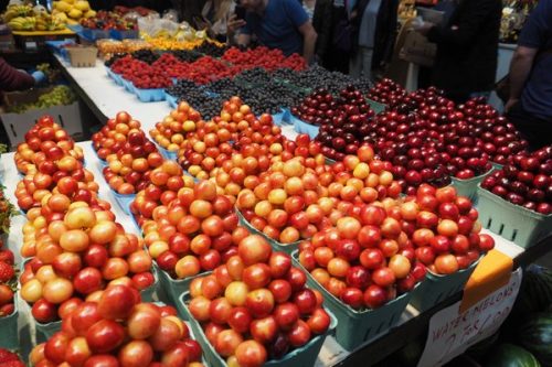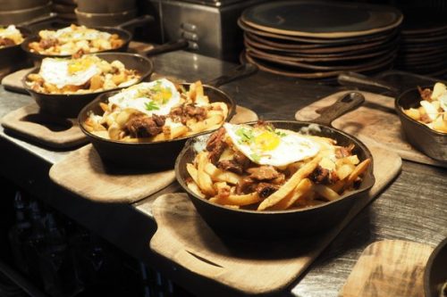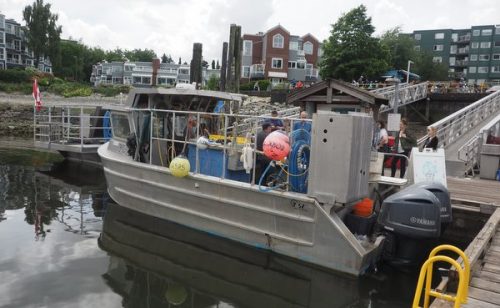 This was a fun day. We headed out to Granville Island, Vancouver, where we met up with chef Ned Bell at Edible Canada After a lunch of bison poutine, we visited Granville Island market to buy some ingredients. Then it was off to have a look at some seafood. We were tempted by Dungeness crab and lobster at Lobster World, but then Ned told us that some of his fishermen friends had just landed with some spot prawns. It’s spot prawn season here, and they are highly prized. So we headed down to Fisherman’s Wharf and bought some.
