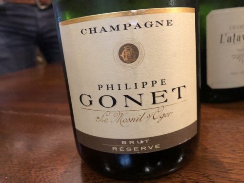 Based in Le Mesnil sur Oger. 60% Pinot Noir, 30% Chardonnay and 10% Meunier. Bouzy and Ambonnay for Pinot Noir, the Chardonnay is from Mongeux (?). 7 g/l dosage. 150 000 production, moving towards organics. Pierre and Chantelle Gonet are seventh generation. Growers. Tight with subtle toasty notes and a lovely lemony core. This has nice density and focus with purity, and a hint of pithiness. Real refinement here, with a touch of richness on the finish. 92/100